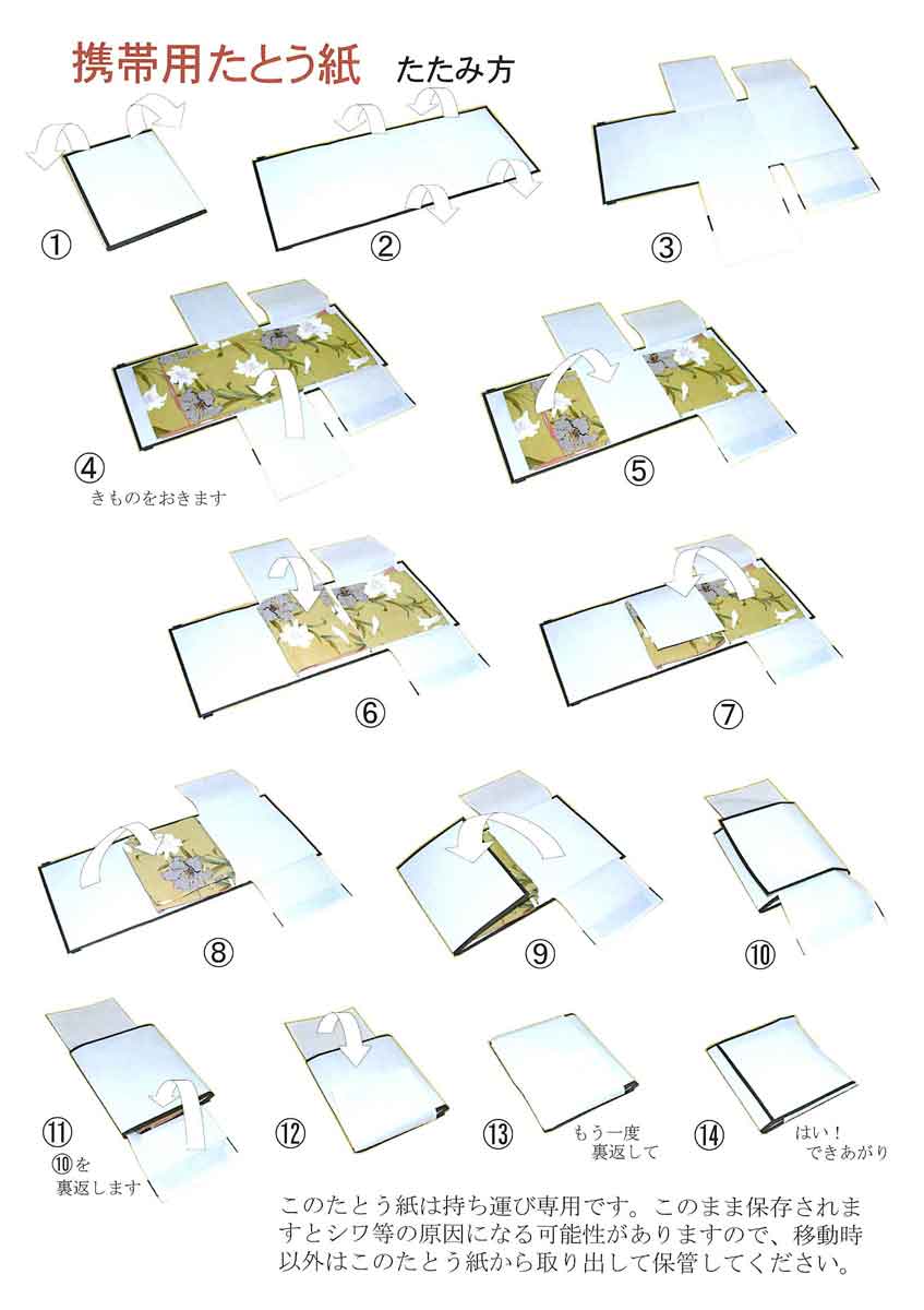このまま保存されますと シワ等の原因になる可能性がありますので、移動時以外は このたとう紙から取り出して保管して下さい ※注意書き※ モニターにより画像と実際の商品の色が多少異なる事がございます和装便利グッズ きもの用 携帯用 たとう紙 着物持ち運び用 マジックテープでしっかりキープ