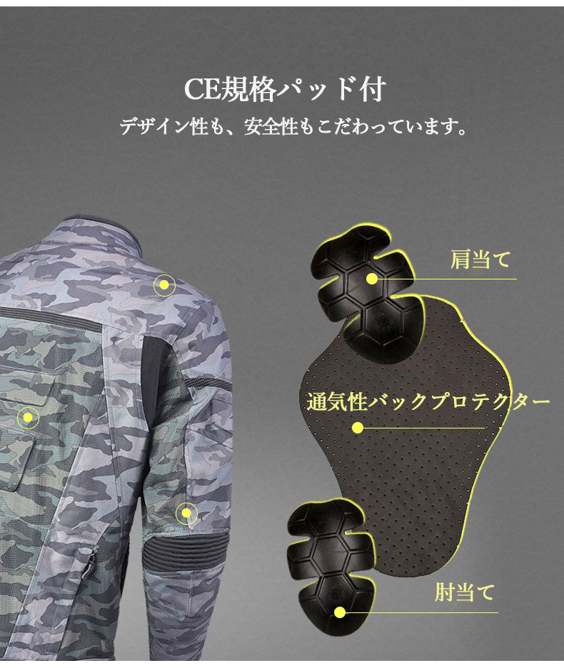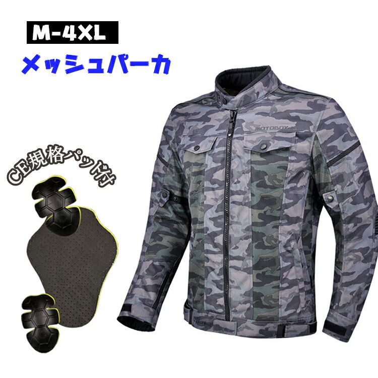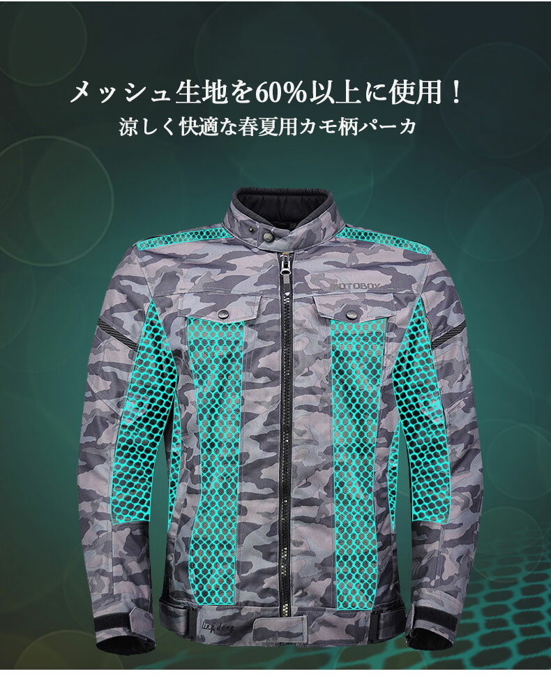 MOTOBOY 夏用 カモ柄 パーカ バイクウェア プロテクター付き 大きいサイズあり ライディングウェア オフロード オートバイ ジャケット 迷彩グラフィック 内ポケット ツーリング 通気性 メッシュ 肘/肩/背中