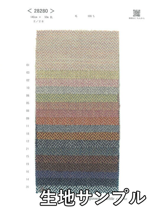 ウール【28280】【無地】【送料無料 ヤマトネコポス便配送 代引不可】【ウール生地】カラー全17色【生地サンプル】【ウールツイード】28280 ☆ジャケットやスカート パンツ カバン 帽子など小物にも